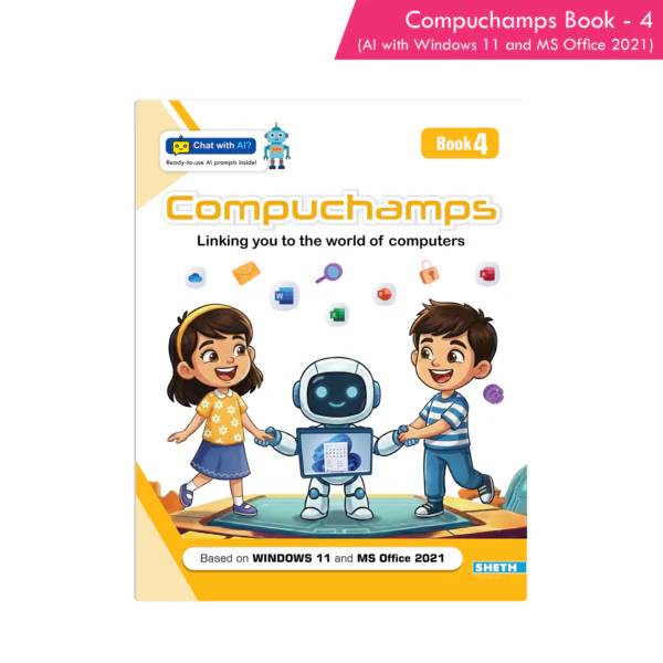 The Compuchamps Book – 4 is an advanced educational resource designed to elevate young learners’ understanding of computer concepts. This book covers a broad range of topics, including types of personal computers, an introduction to LOGO, deeper insights into operating systems, types of memory, working with MS Windows, advanced features of Microsoft Word 2016, classification and characteristics of computers, and an introduction to PowerPoint presentations. Based on Windows 2010 and MS Office 2016, the course ensures that the content is both relevant and up to date. Each chapter features engaging activities like fill-in-the-blanks, question-and-answer sections, and matching exercises to help students recall and reinforce their learning.